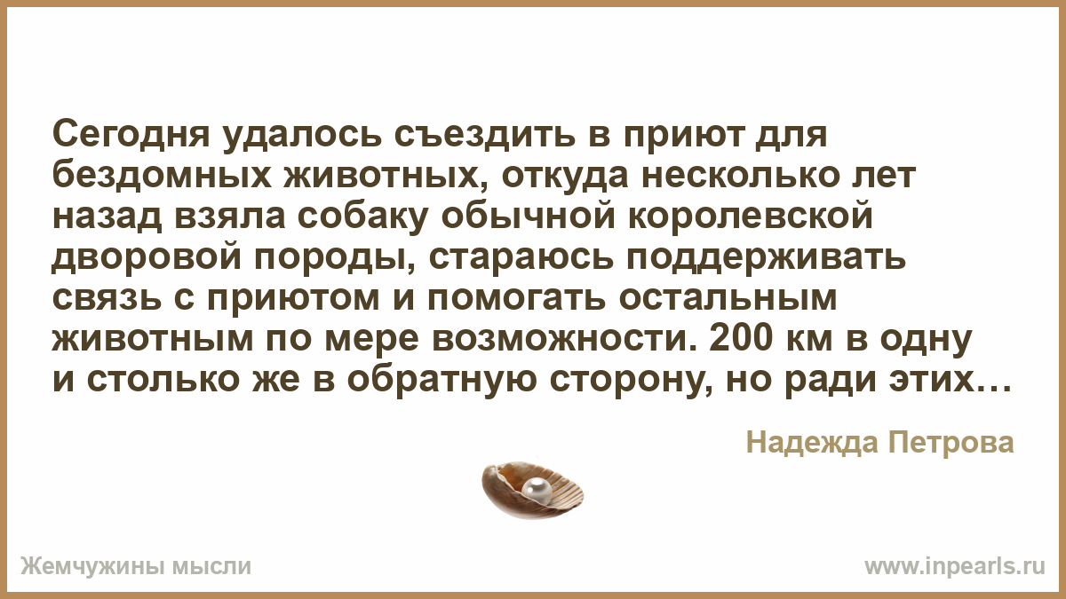 Сегодня удалось съездить в приют для бездомных животных, откуда несколько лет назад взяла собаку обычной королевской дворовой породы, стараюсь поддерживать связь с приютом и помогать остальным животным по мере возможности. 200 км в одну и столько же в обратную сторону, но ради этих эмоций это того стоило. Всех по возможности потискала, погладила, привезла вкусняшки, была сшиблена с ног здоровым маламутом, который не хотел меня отпускать. Единственное было очень тяжело смотреть им в глаза, которые спрашивают «Ты за мной?»… Очень тяжело, и никак не можешь объяснить поведение людей, которые так поступили с ними.