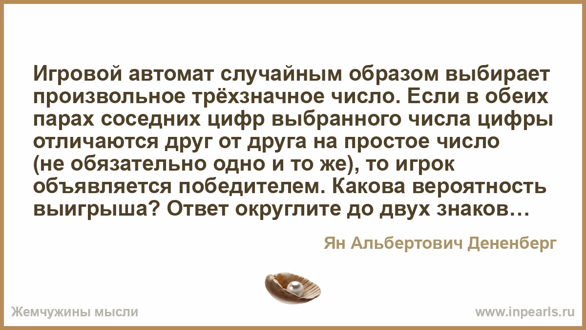 Игровой автомат случайным образом выбирает произвольное трёхзначное число. Если в обеих парах соседних цифр выбранного числа цифры отличаются друг от друга на простое число (не обязательно одно и то же), то игрок объявляется победителем. Какова вероятность выигрыша? Ответ округлите до двух знаков после запятой.