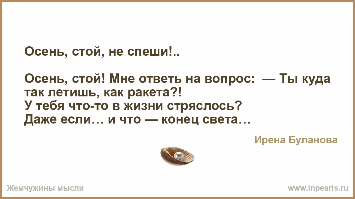 Осень, стой! Мне ответь на вопрос: — Ты куда так летишь, как ракета?!