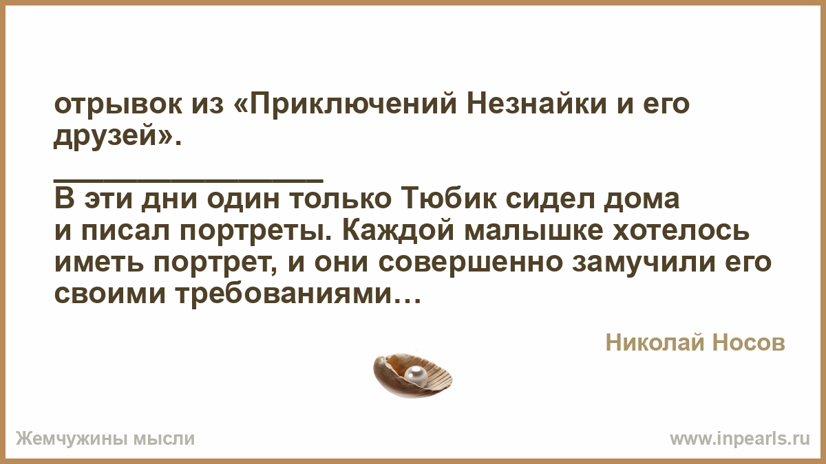 В эти дни один только Тюбик сидел дома и писал портреты. Каждой малышке хотелось иметь портрет, и они совершенно замучили его своими требованиями.