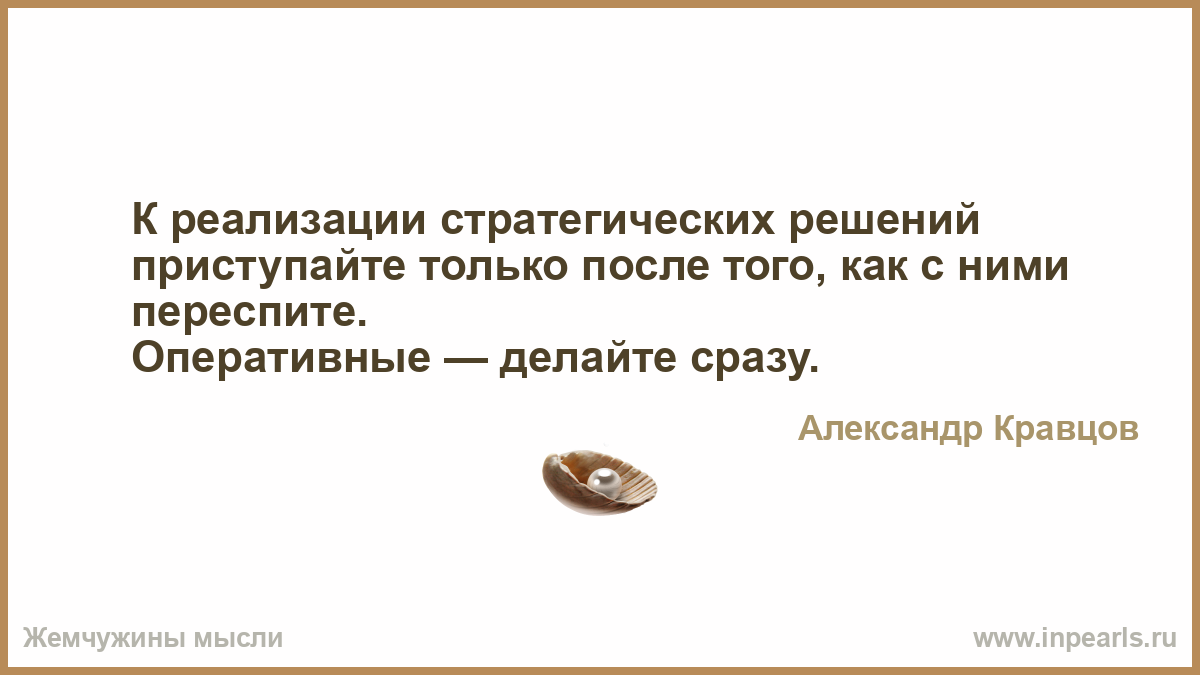 К реализации стратегических решений приступайте только после того, как с ними переспите.