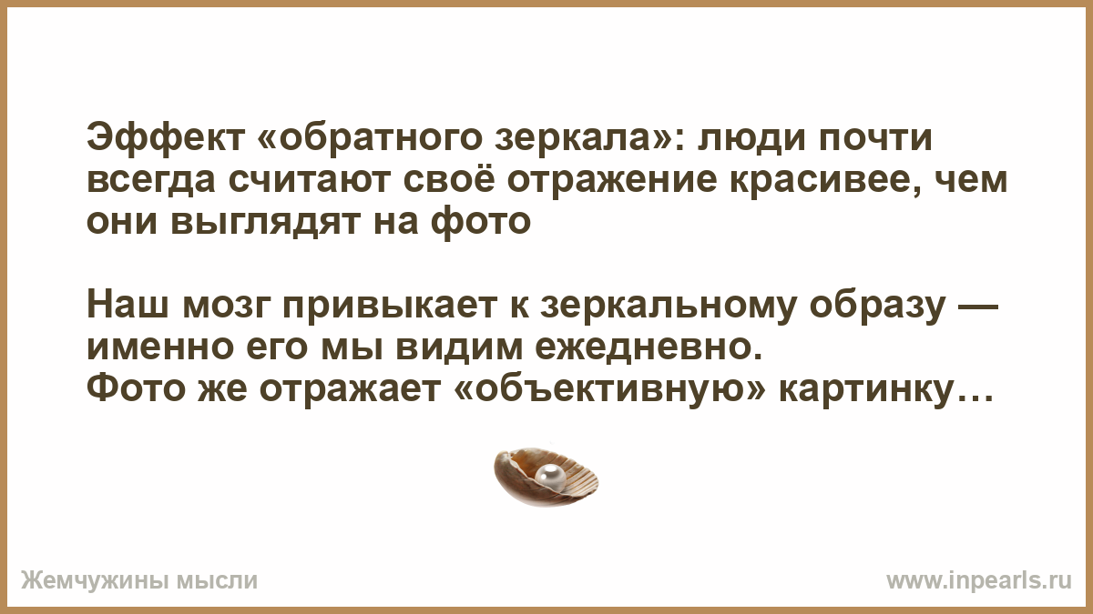 Эффект «обратного зеркала»: люди почти всегда считают своё отражение красивее, чем они выглядят на фото