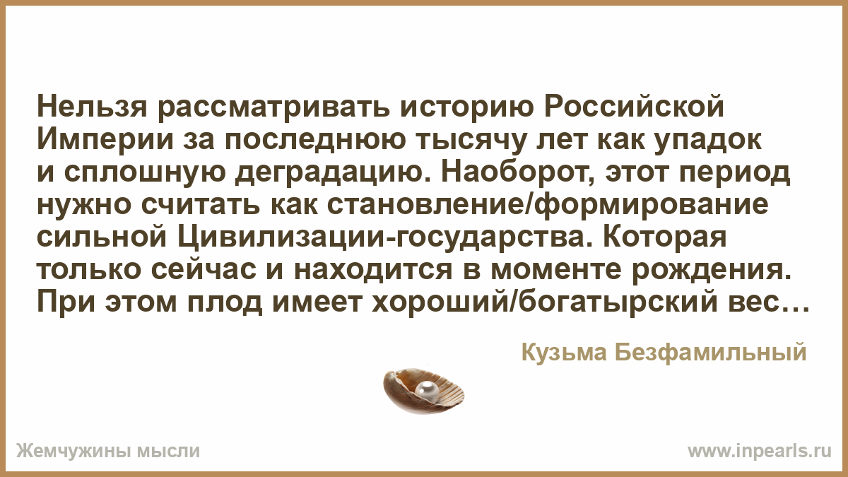 Русского патриотизма не может быть без чувства сопричастности к великой истории России как Империи и к величию этносов которые испокон веков живут в ней и её оберегают.