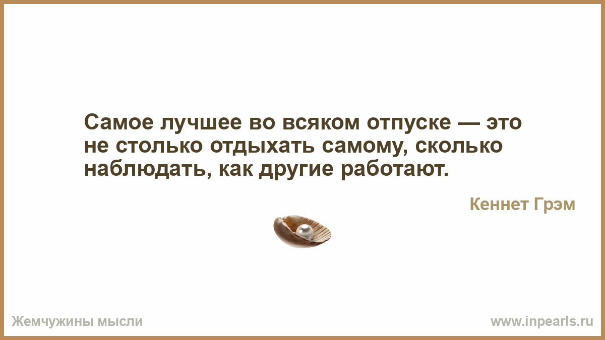 Самое лучшее во всяком отпуске — это не столько отдыхать самому, сколько наблюдать, как другие работают.