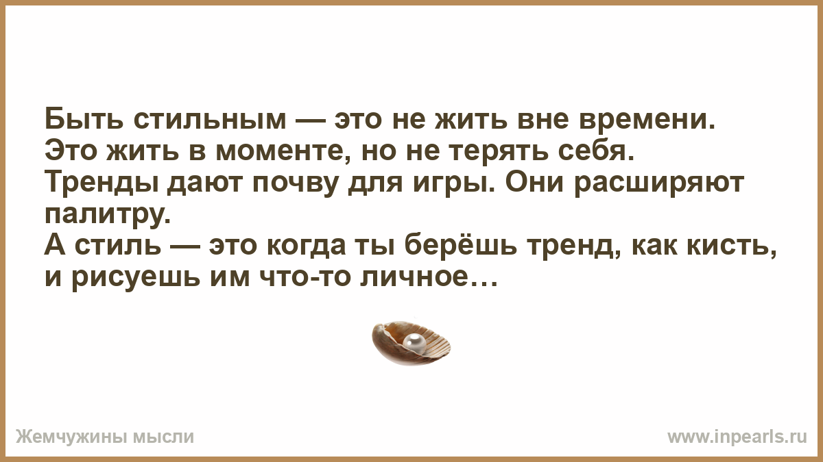 А стиль — это когда ты берёшь тренд, как кисть, и рисуешь им что-то личное.
