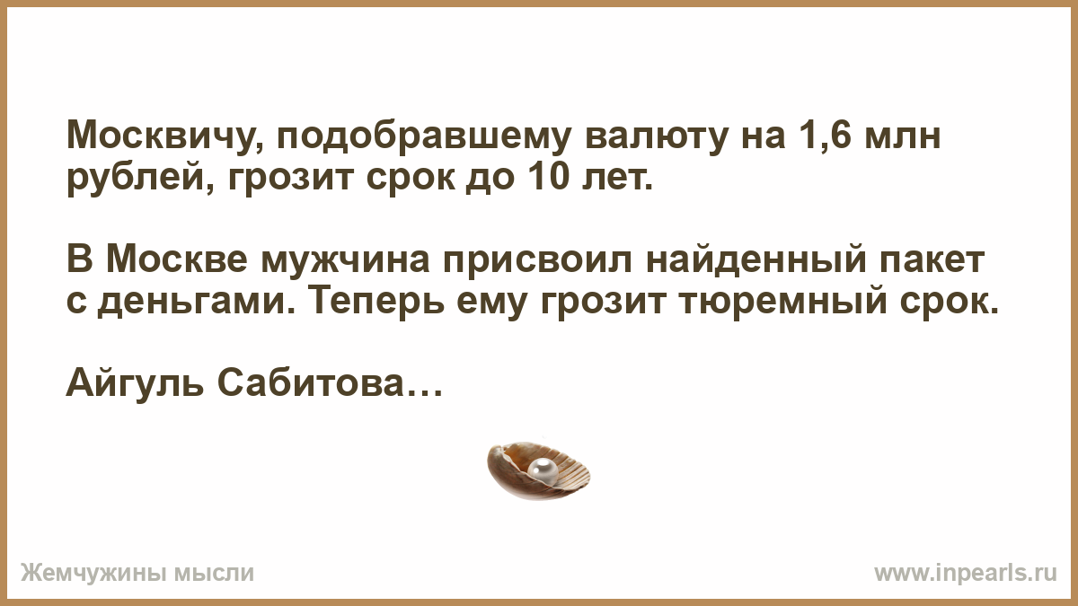 В Москве мужчина присвоил найденный пакет с деньгами. Теперь ему грозит тюремный срок.