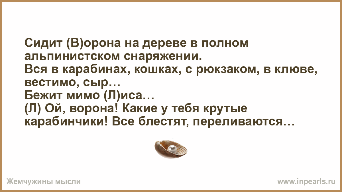 (Л) Слышь, ворона! Тут знающие люди говорят, что никакой ты не альпинист, а все прибамбасы для понта на себе тягаешь. ..