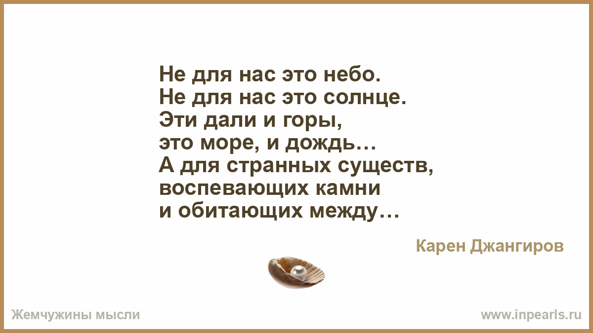 Однажды, на закате жизни ты найдешь себя там, откуда когда-то начал, и осознаешь, что все это время не ты неустанно скитался по миру, а мир жил сквозь тебя, как трава прорастает чрез камень