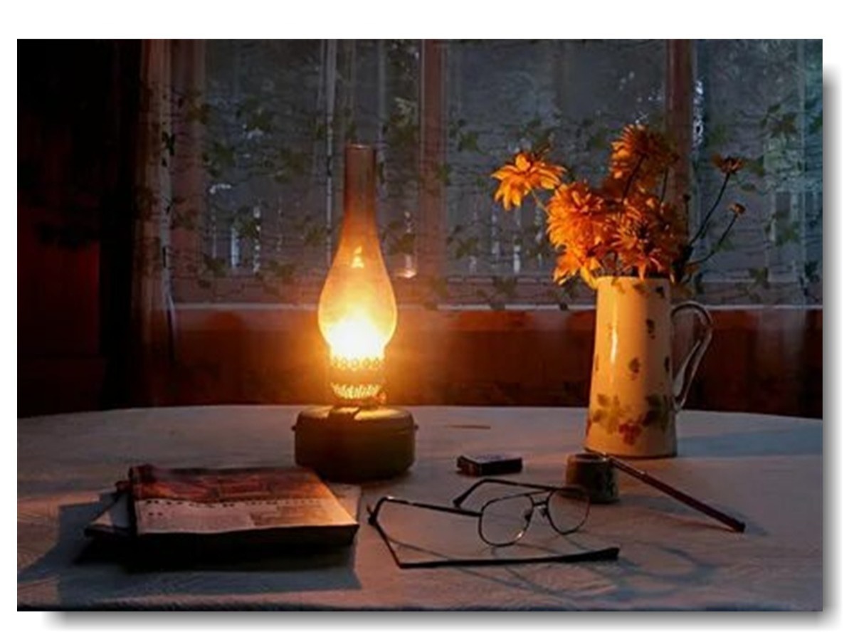 А на столе в доме около печки стоит керосиновая лампа, которая горит тоскливо и смотрит на меня…