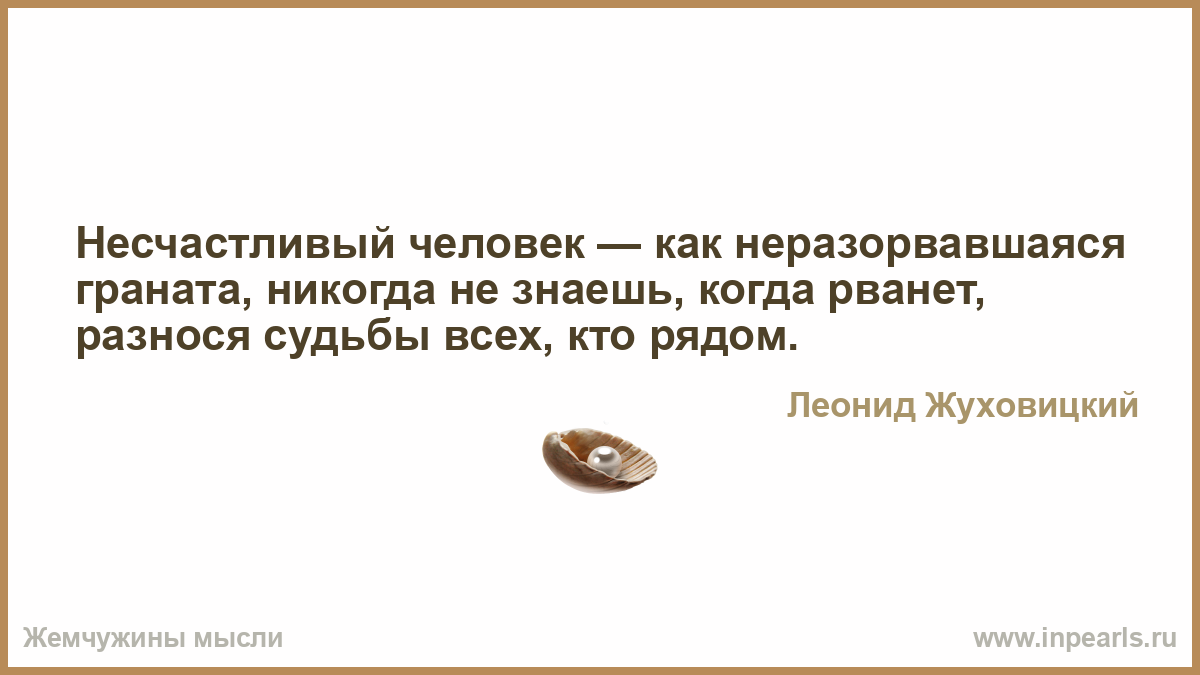 Несчастливый человек — как неразорвавшаяся граната, никогда не знаешь, когда рванет, разнося судьбы всех, кто рядом.