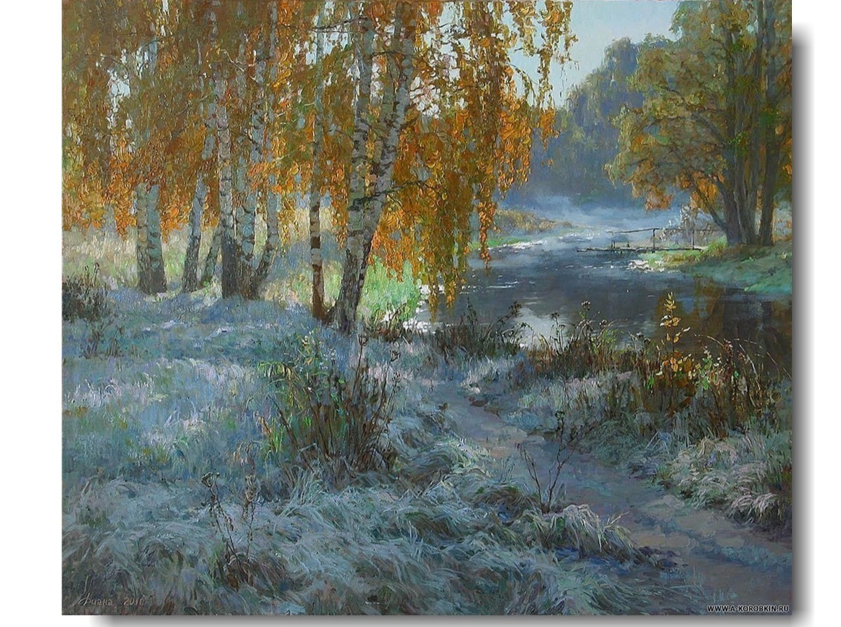Ветки тянутся к небу голыми руками, словно в прощальной молитве к уходящему солнцу. Воздух в картине прозрачен, будто наполнен лёгкой дымкой, предвещающей скорый холод и зиму.