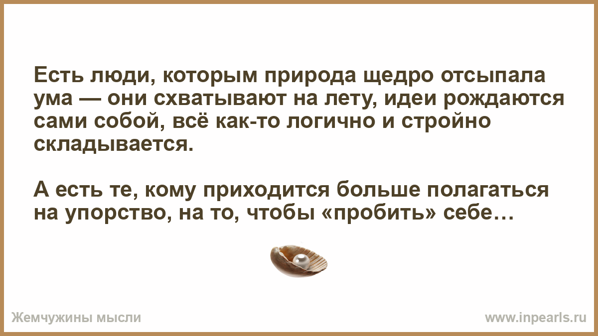 Есть люди, которым природа щедро отсыпала ума — они схватывают на лету, идеи рождаются сами собой, всё как-то логично и стройно складывается.