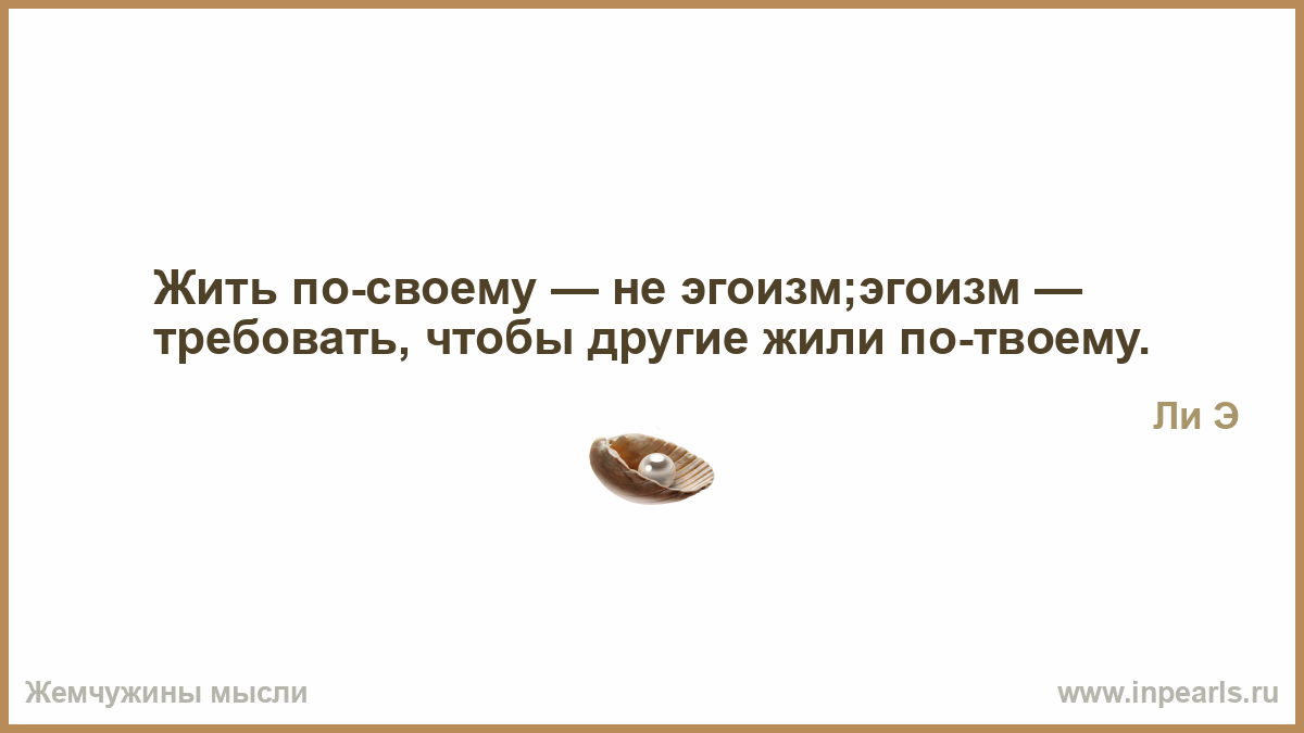Жить по-своему — не эгоизм;эгоизм — требовать, чтобы другие жили по-твоему.