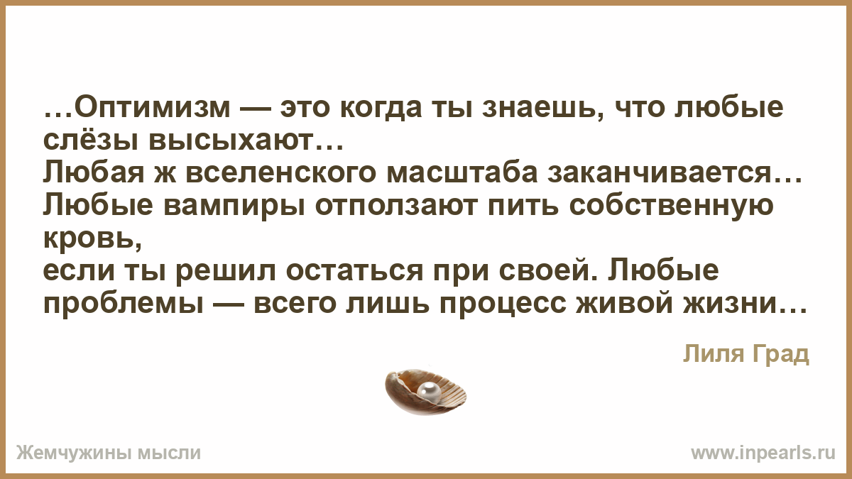…Оптимизм — это когда ты знаешь, что любые слёзы высыхают…