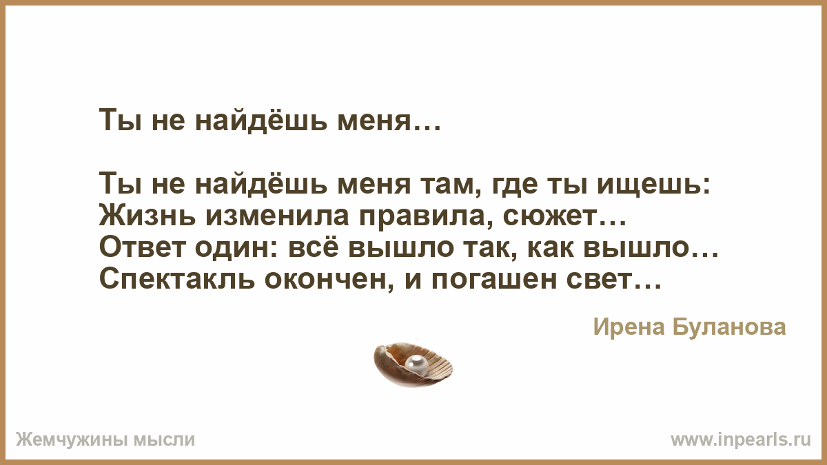 Я в жизни не боролась за мужчин. Зачем?! Ведь это в принципе не верно По ряду обстоятельств и причин, А главное — бессмысленно, наверно. Не знаю… то ли гордою была, И это действо мне всегда претило… А может, свои нервы берегла И молча, без скандалов, уходила. Войны не объявляла никогда Соперницам и не стращала карой: Я просто уходила… навсегда… Такой мужчина мне не нужен даром! Бороться и кричать «я не отдам!», Потом всю жизнь терпеть и унижаться… Не верить ни глазам и ни словам, И ежедневно за …