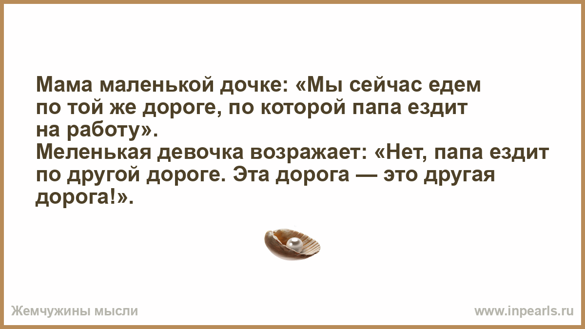 Меленькая девочка возражает: «Нет, папа ездит по другой дороге. Эта дорога — это другая дорога!».
