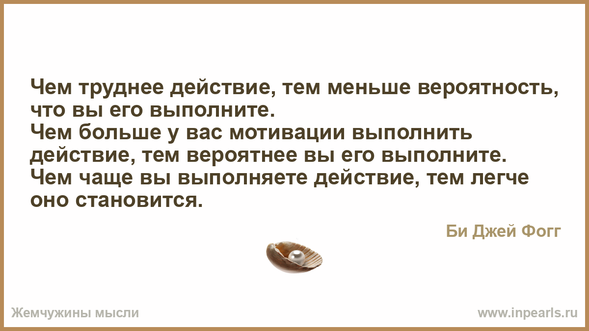 Чем больше у вас мотивации выполнить действие, тем вероятнее вы его выполните.