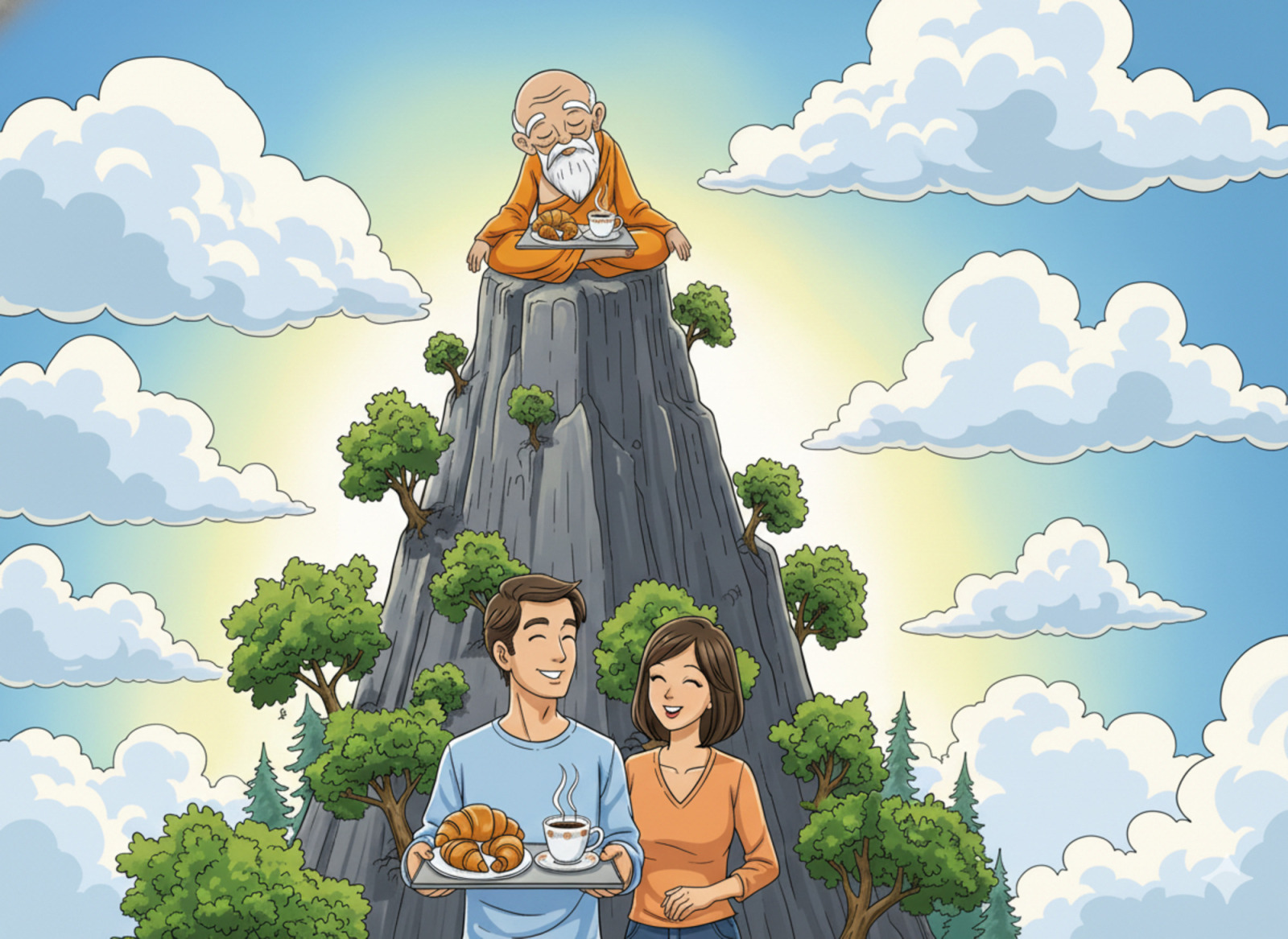 Круассаны с кофе — это сочетание превращают обычный завтрак в маленький грешок с ароматом счастья...😆😇Но утром можно чуть согрешить :))) А старец, видимо, решил, что мудрость лучше усваивается во сне и это правильно!