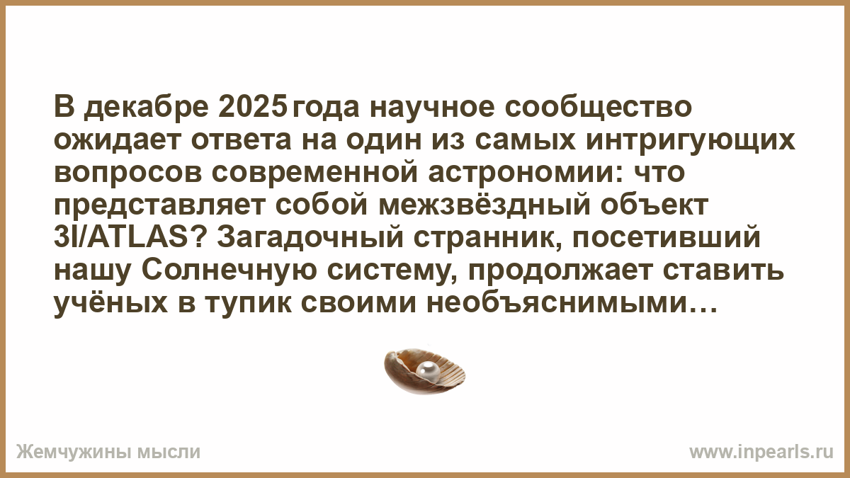В декабре 2025 года научное сообщество ожидает ответа на один из самых интригующих вопросов современной астрономии: что представляет собой межзвёздный объект 3I/ATLAS? Загадочный странник, посетивший нашу Солнечную систему, продолжает ставить учёных в тупик своими необъяснимыми свойствами.