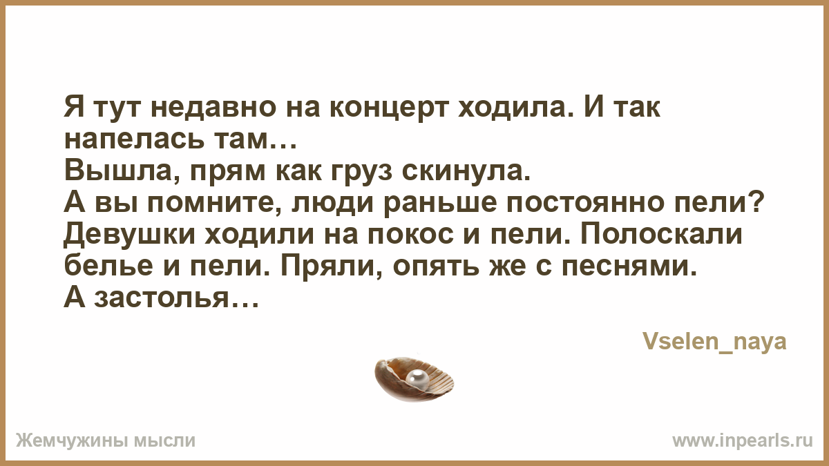 Я тут недавно на концерт ходила. И так напелась там…