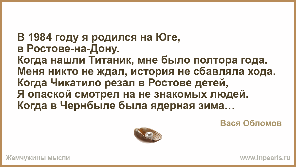 В 1984 году я родился на Юге, в Ростове-на-Дону.