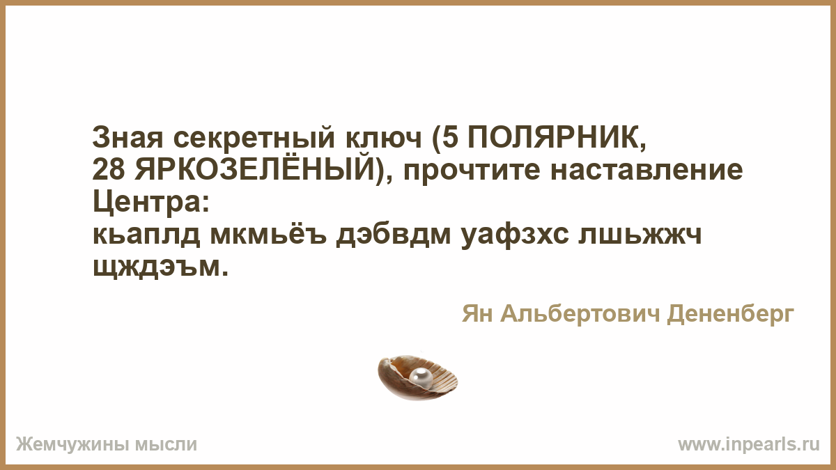 Зная секретный ключ (5 ПОЛЯРНИК, 28 ЯРКОЗЕЛЁНЫЙ), прочтите наставление Центра: