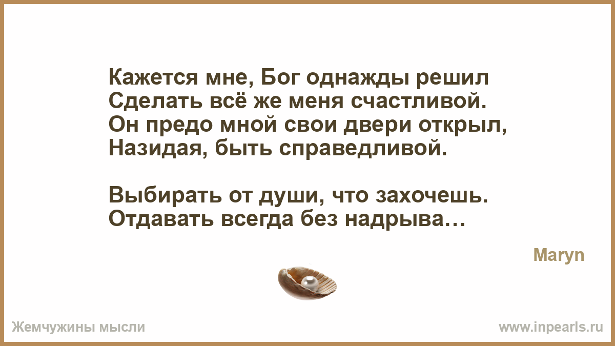 Кажется мне, Бог однажды решил