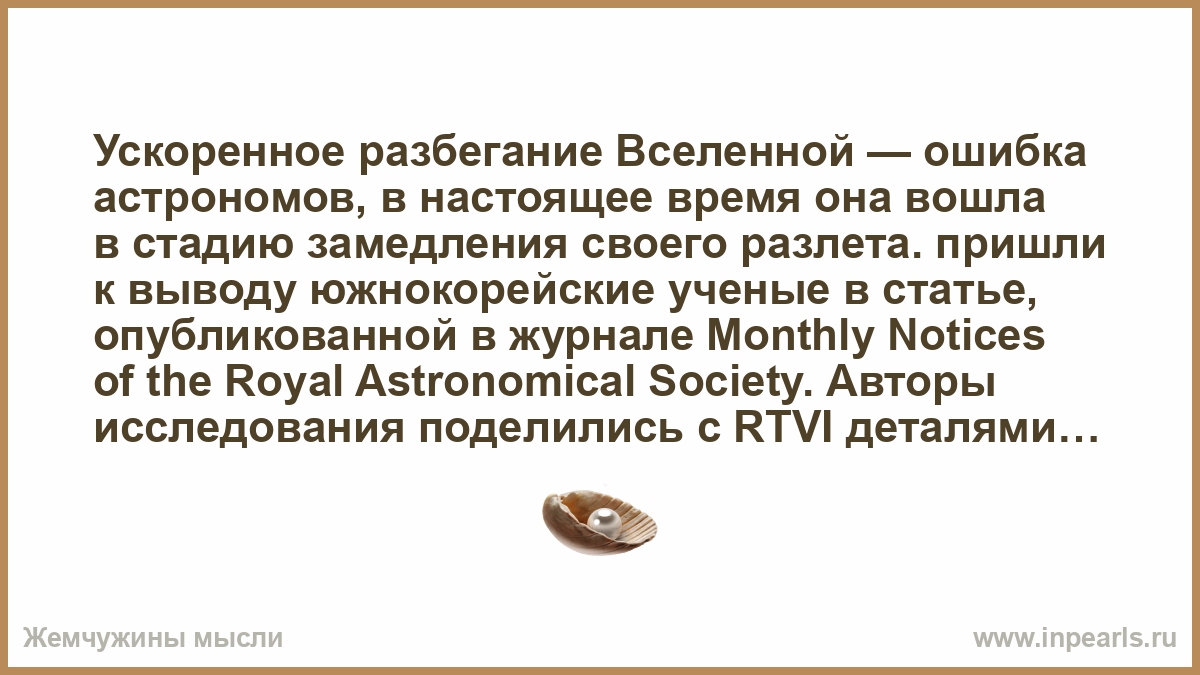 Ускоренное разбегание Вселенной — ошибка астрономов, в настоящее время она вошла в стадию замедления своего разлета. пришли к выводу южнокорейские ученые в статье, опубликованной в журнале Monthly Notices of the Royal Astronomical Society. Авторы исследования поделились с RTVI деталями новой гипотезы.