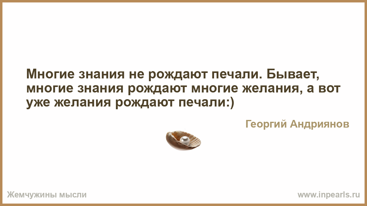 Многие знания не рождают печали. Бывает, многие знания рождают многие желания, а вот уже желания рождают печали:)