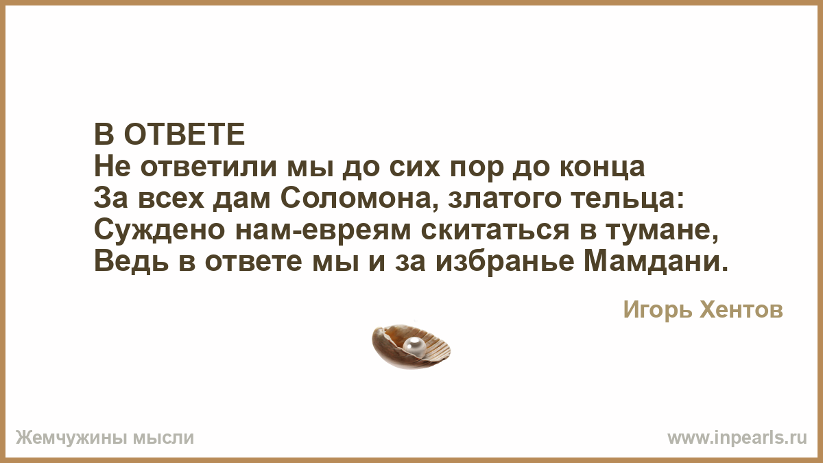 ПРЯМОЙ ОТВЕТ О чём бы ни спросил я у еврея, Еврей всегда даёт такой ответ, Что прямотой своею душу греет — Иль «таки да», мой друг, иль «таки нет».
