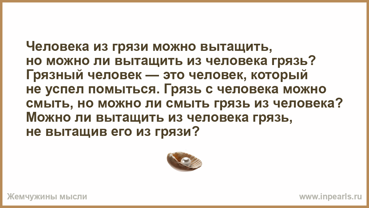 — Грязные бывают не только руки, но и — душа. Один раз зайдёшь, потом всю жизнь не отмоешься…