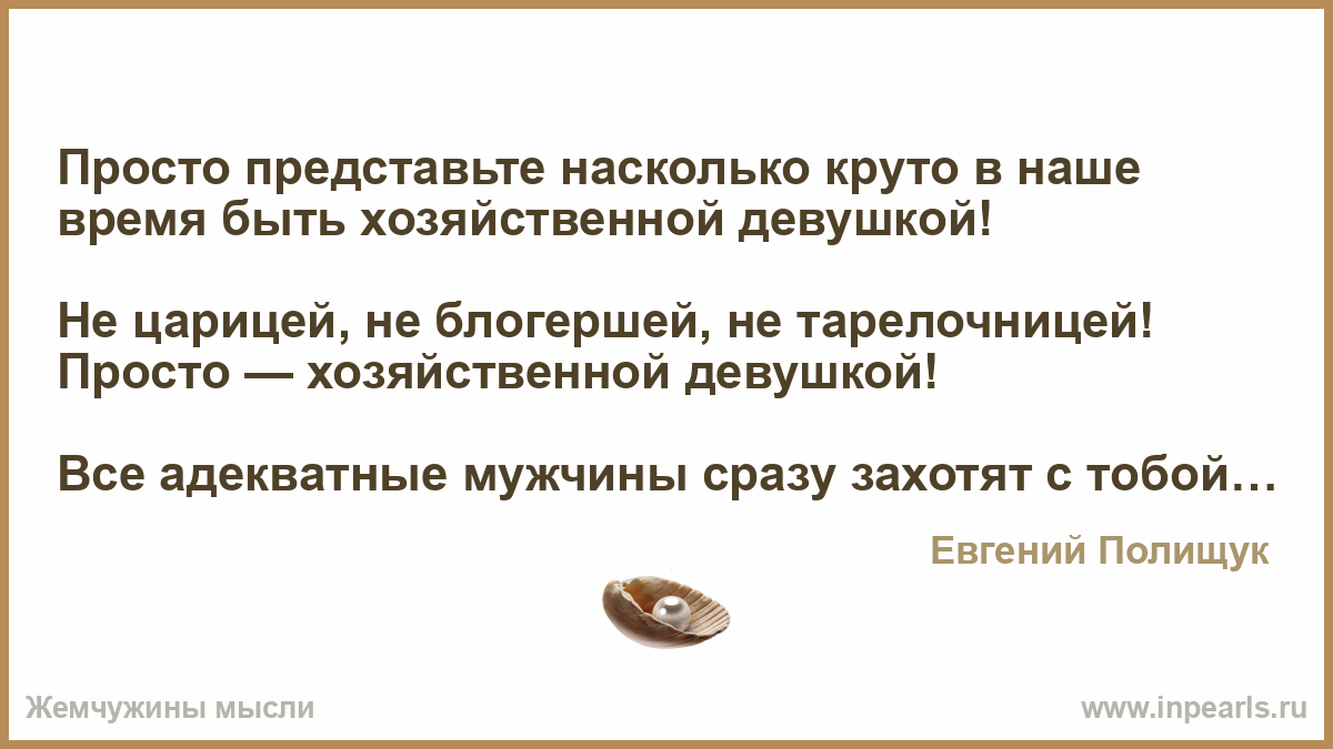 Не царицей, не блогершей, не тарелочницей! Просто — хозяйственной девушкой!