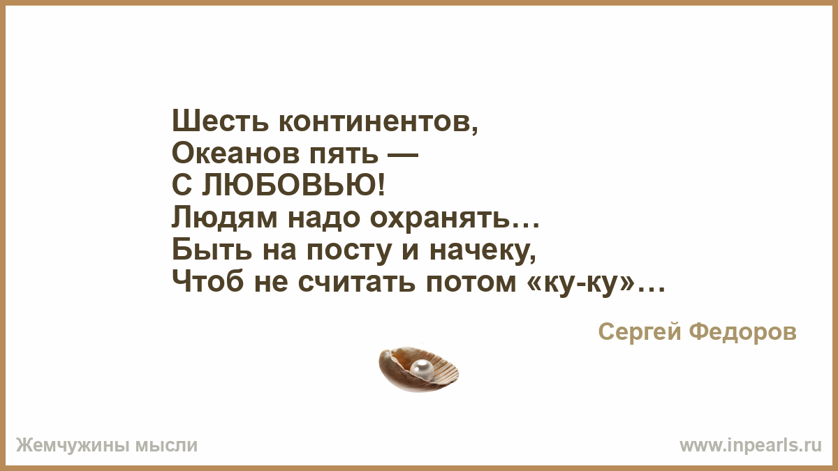 Пока есть зачем — встречайтесь, Если есть куда — стремитесь, И почаще улыбаясь, На судьбу… поменьше злитесь.
