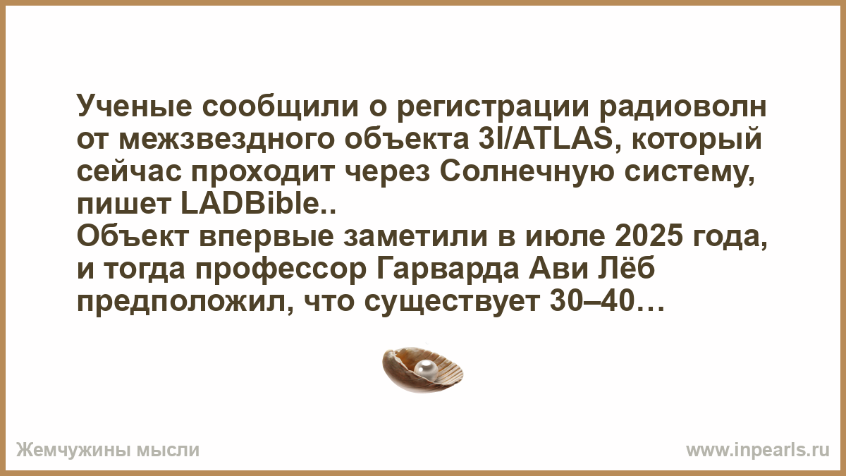 Объект впервые заметили в июле 2025 года, и тогда профессор Гарварда Ави Лёб предположил, что существует 30–40% вероятность, что тело может быть искусственного происхождения — например, «инопланетным зондом» или даже «материнским кораблем».