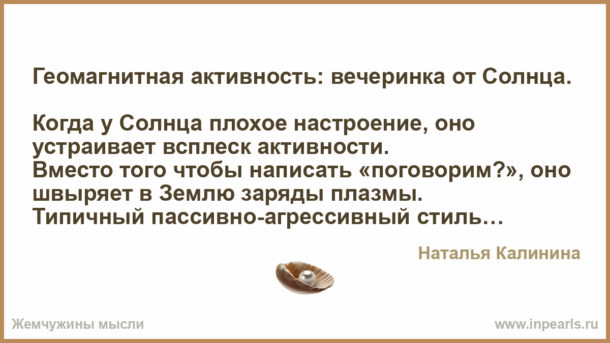 И пожалуйста, пусть это будет с предупреждением в виде смс: «Здравствуй, это Солнце. Я сегодня немного бурное. Прими меры и чай.»