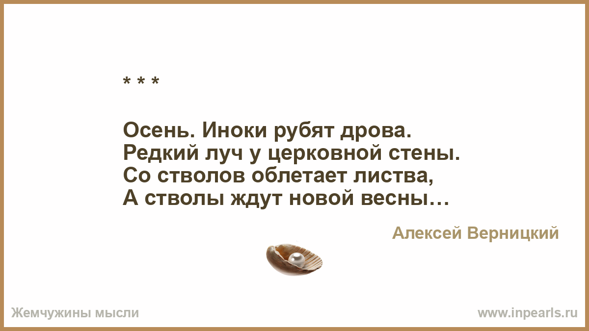 Не грусти, моя родная, осень нам дана, чтобы жить не унывая, помнить, что весна вопреки всему настанет, нынче рыжий лес свой наряд вот-вот оставит, хватит нам чудес, будет мёрзнуть оголённым несколько недель, навевать тоску влюбленным, но придёт метель, белым шарфиком накроет, чтобы лес не мёрз, так и мы, душа, с тобою, после гроз и слёз, в ожидании застынем, пусть утешат сны, а мороз он тоже минет. Будем ждать весны!