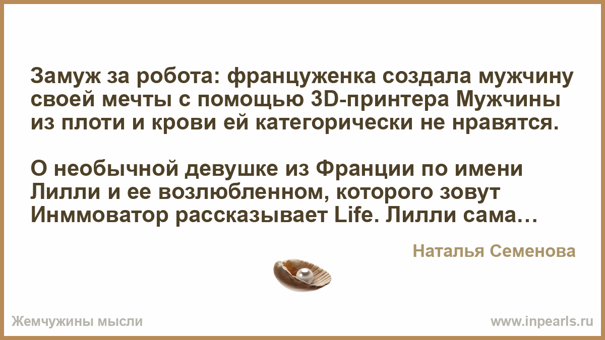 Вот девушки думают что парням нада только бы трахнуть типа… или там «вставить-кончить». а вот нет. нам нада чтобы у нас на шее повисели. чтобы утром под майку холодными руками… чтобы ущипнули когда зубы чистишь, чтобы приставали когда устал, чтобы будили когда нинада, чтобы толкались за одеяло, чтобы мелодрама по какому то каналу вместо футбола, чтобы «грибы полезнее», чтобы «пиво в другой раз», чтобы «а в эту субботу мы к маме моей едем», чтобы «пофек что хоккей», чтобы иногда дверь в ванную была открыта, чтобы «милый почини розетку» и током йобнуло, чтобы «на спектакль», чтобы «хочу шубу», чтобы «а я тебе бритву купила», чтобы «завтра МАМА приезжает», чтобы «почему ты так поздно?», чтобы минет просто так (немог пропустить), чтобы «Я ТЕБЯ ЛЮБЛЮ» — было.