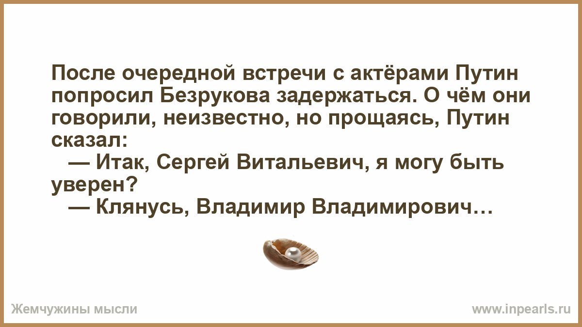 Третий: А я к своей не то что с разговорами, вообще подойти теперь боюсь. Вваливается вчера, на шее венок — и надпись:'От люберецкой братвы'.