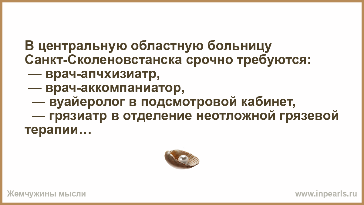 В центральную областную больницу Санкт-Сколеновстанска срочно требуются: