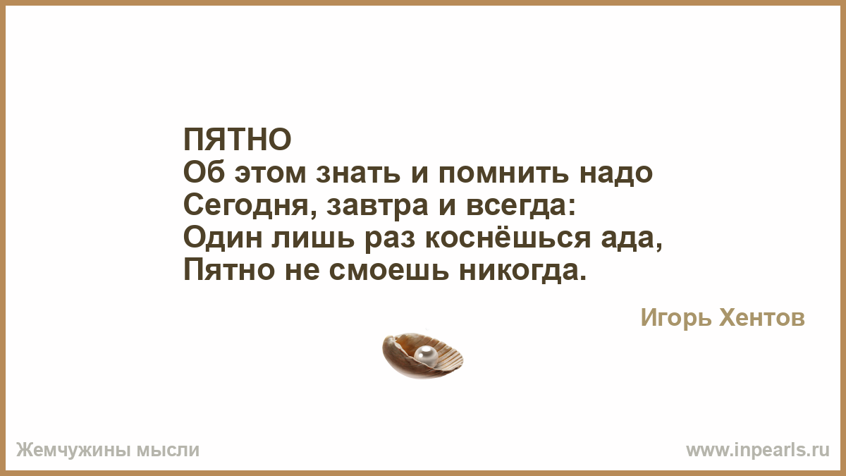 ПЯТНА Испачкали костюм — к чему тужить? Почистите, затем смотрите в оба — Пятно на репутации лежит С момента попадания до гроба.