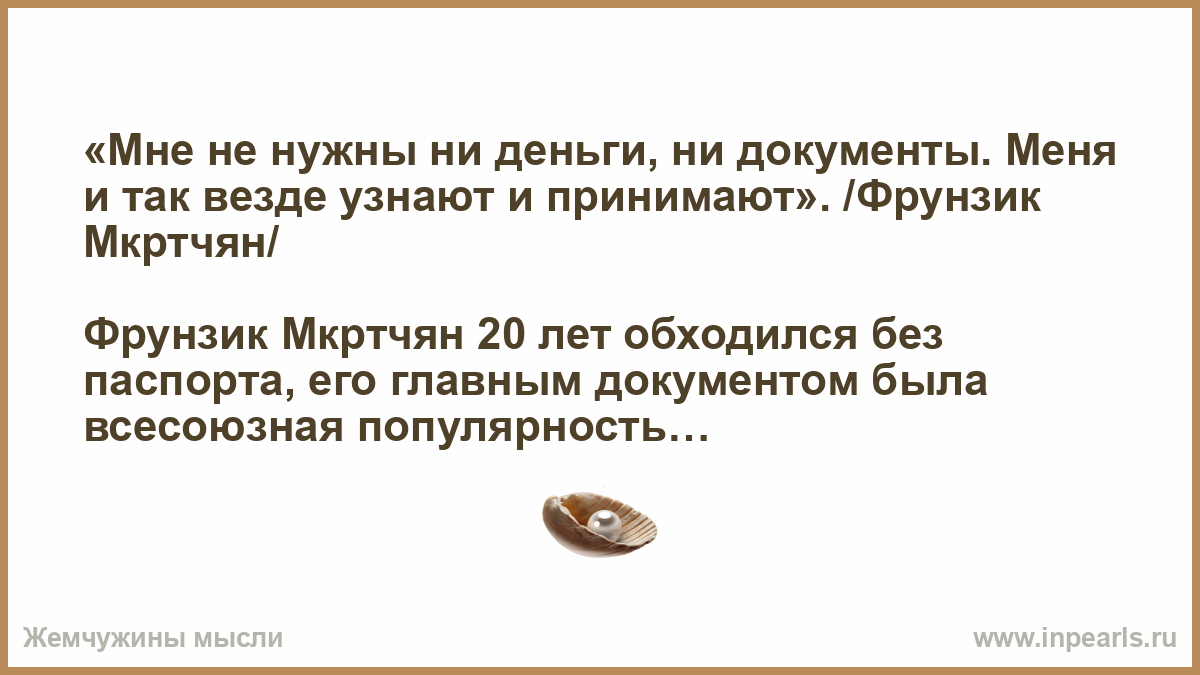 «Мне не нужны ни деньги, ни документы. Меня и так везде узнают и принимают». /Фрунзик Мкртчян/