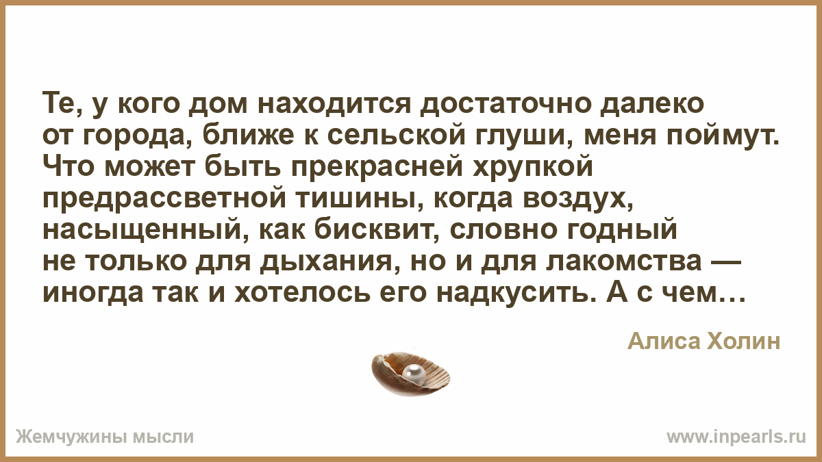 Те, у кого дом находится достаточно далеко от города, ближе к сельской глуши, меня поймут. Что может быть прекрасней хрупкой предрассветной тишины, когда воздух, насыщенный, как бисквит, словно годный не только для дыхания, но и для лакомства — иногда так и хотелось его надкусить. А с чем могут сравниться щедрые урожаи фруктов в садах или умопомрачительный запах осенней шарлотки с высушенными ягодами винограда?