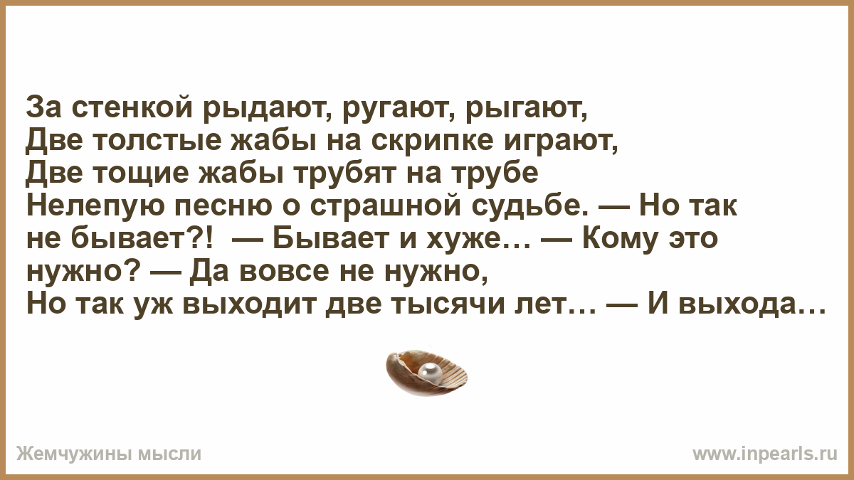 Нелепую песню о страшной судьбе. — Но так не бывает?! — Бывает и хуже… — Кому это нужно? — Да вовсе не нужно,