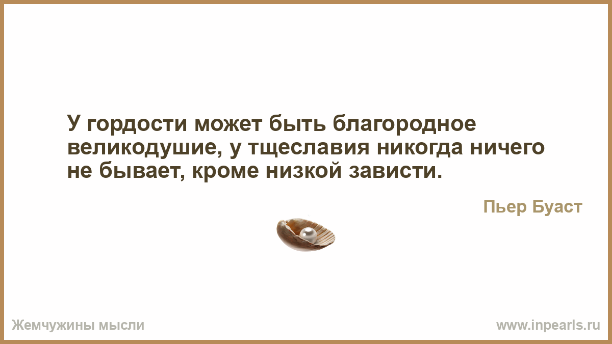 У гордости может быть благородное великодушие, у тщеславия никогда ничего не бывает, кроме низкой зависти.