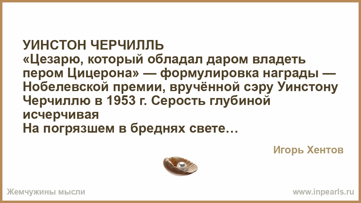 «Цезарю, который обладал даром владеть пером Цицерона» — формулировка награды — Нобелевской премии, вручённой сэру Уинстону Черчиллю в 1953 г. Серость глубиной исчерчивая