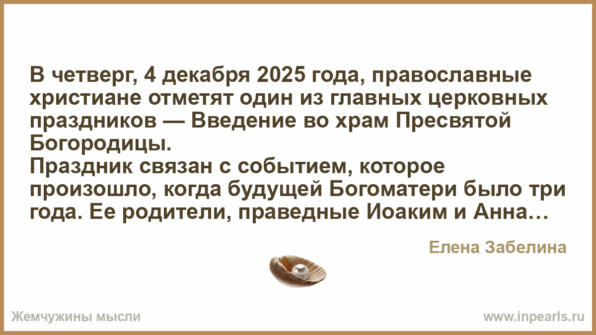 В четверг, 4 декабря 2025 года, православные христиане отметят один из главных церковных праздников — Введение во храм Пресвятой Богородицы.