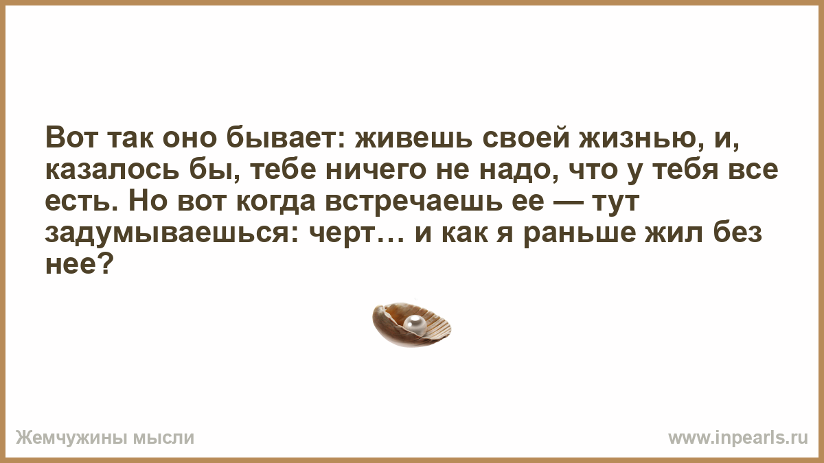 Вот так оно бывает: живешь своей жизнью, и, казалось бы, тебе ничего не надо, что у тебя все есть. Но вот когда встречаешь ее — тут задумываешься: черт… и как я раньше жил без нее?
