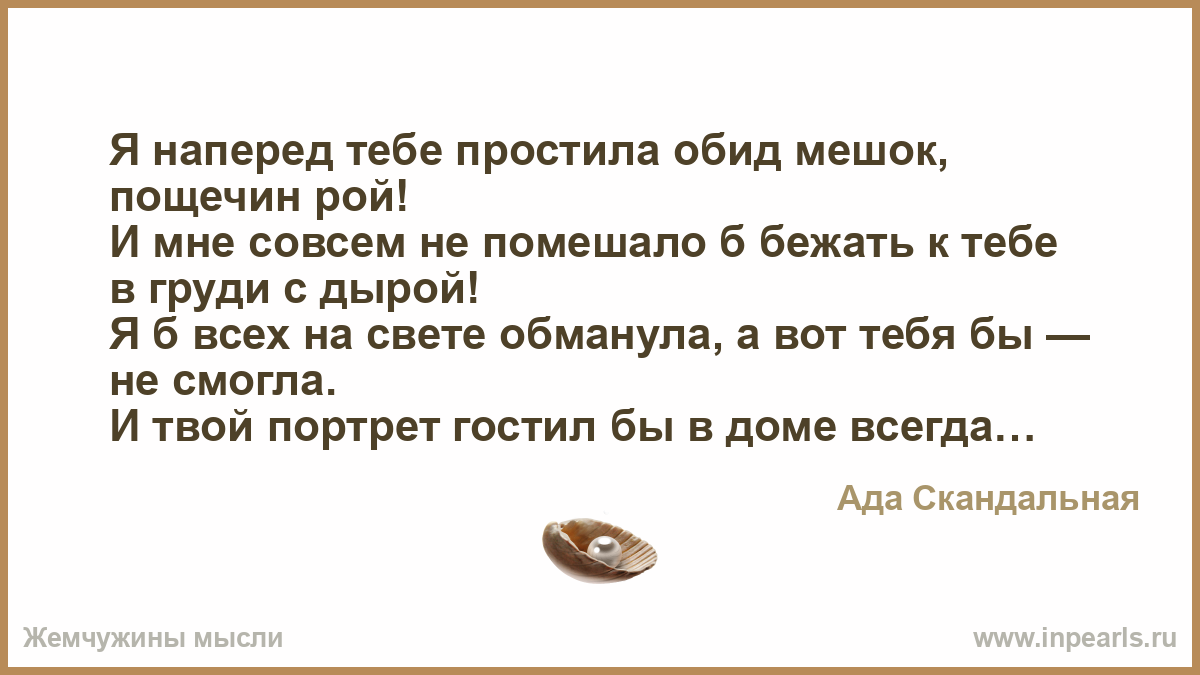 Я ж наперёд тебе простила обид мешок, пощечин рой!