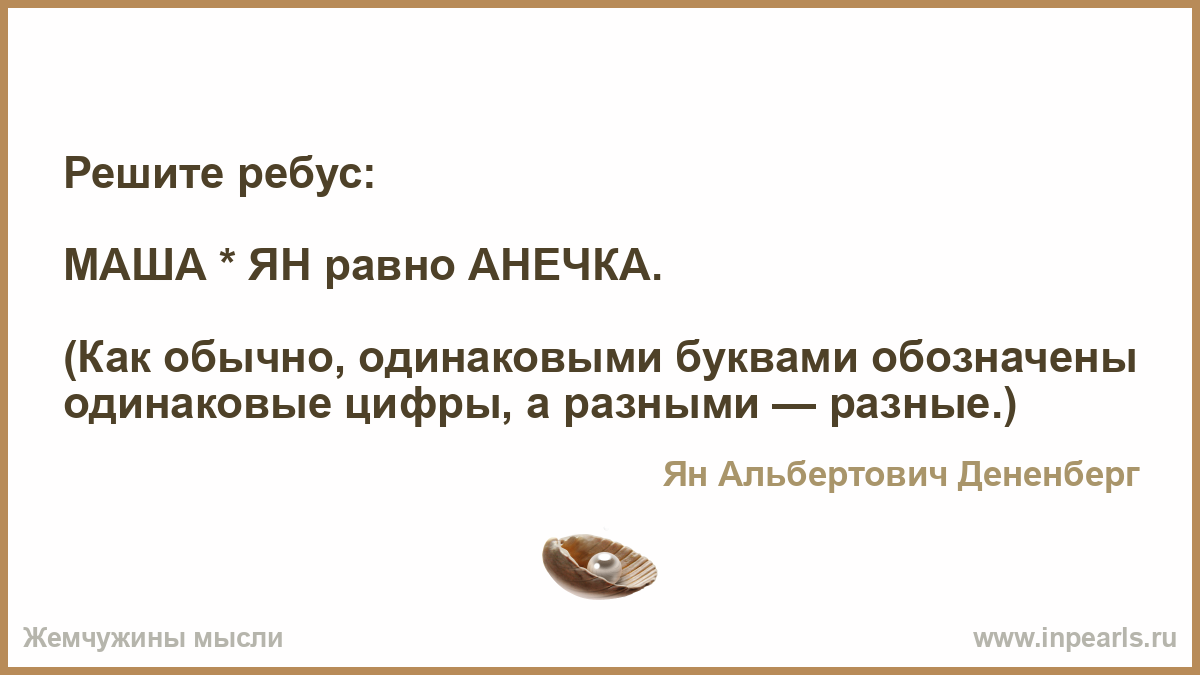 Не пиша компьютерной программы и не пользуясь катькулятором, расшифруйте ребус (разным буквам соответствуют разные цифры, одинаковым одинаковые):
