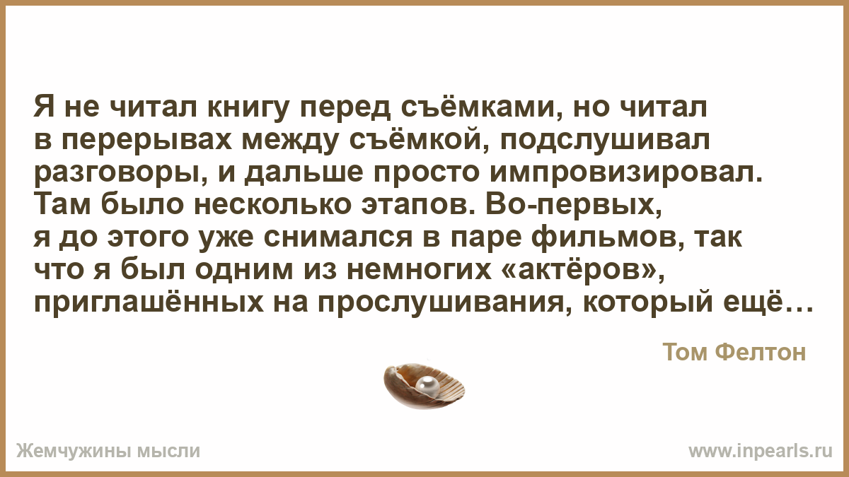 Я не читал книгу перед съёмками, но читал в перерывах между съёмкой, подслушивал разговоры, и дальше просто импровизировал. Там было несколько этапов. Во-первых, я до этого уже снимался в паре фильмов, так что я был одним из немногих «актёров», приглашённых на прослушивания, который ещё и понятия не имел, что такое эти книги про Гарри Поттера, все остальные дети, которые там были, а это же были открытые прослушивания, так вот, они все знали книги или книгу. Мне кажется, на тот момент вышли две, если вкратце, то меня выбрал Крис Коламбус. Он выстроил всех детей в ряд и по-очереди спрашивал у них, что описанного в книгах они больше всего хотят увидеть в фильме, и вот я стоял там, скучал, и только когда очередь дошла до человека рядом со мной, я осознал, что понятия не имею, о чём он, чёрт возьми, говорит! Я никогда не слышал о Гарри Поттере, и вот ребёнок рядом со мной говорит что-то про Гринготтс, и тоже говорю, мол, Гринготтс, жду не дождусь, когда увижу их, но Крис посмотрел мне в глаза и понял, что я слукавил, и сказал: «Ты проходишь дальше».
